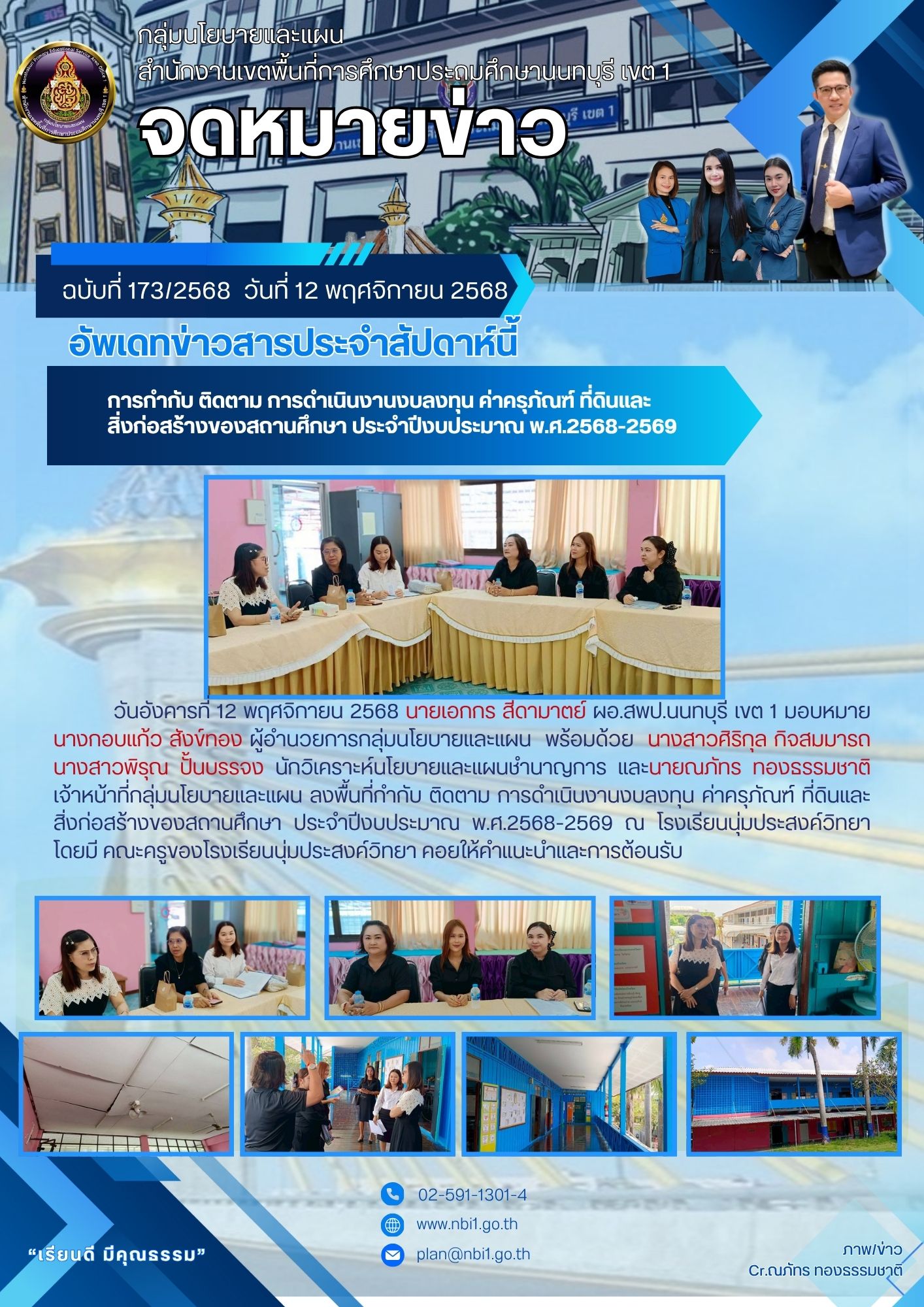 กลุ่มนโยบายและแผนการลงพื้นที่กำกับ ติดตาม การดำเนินงานงบลงทุน ค่าครุภัณฑ์ ที่ดินและสิ่งก่อสร้างของสถานศึกษา ประจำปีงบประมาณ พ.ศ.2568-2569 ของโรงเรียนวัดใหม่ผดุงเขต12 พฤศจิกายน 2025ณภัทร ทองธรรมชาติอ่านต่อ