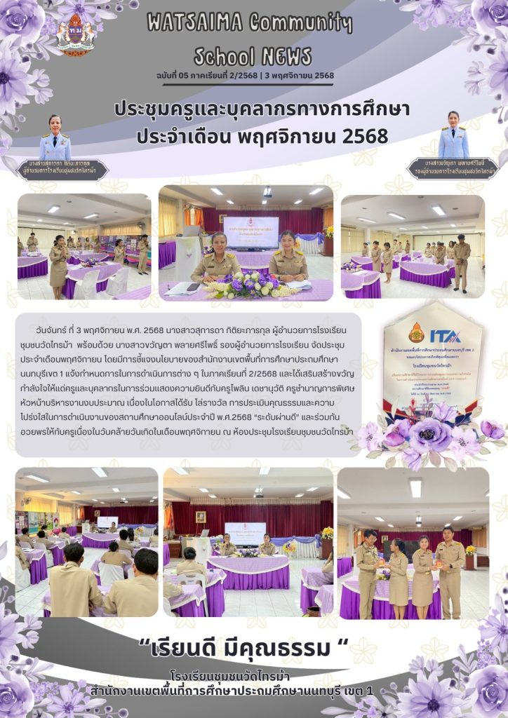 กลุ่มโรงเรียนเมืองนนท์ 2กำกับ ติดตาม การดำเนินงานงบลงทุน ค่าครุภัณฑ์ ที่ดินและสิ่งก่อสร้างของสถานศึกษา ประจำปีงบประมาณ พ.ศ.2568-2569 โรงเรียนวัดบางระโหง (ภิรมย์ศิริ)17 พฤศจิกายน 202517 พฤศจิกายน 2025โรงเรียน วัดบางระโหง(ภิรมย์ศิริ)อ่านต่อ
