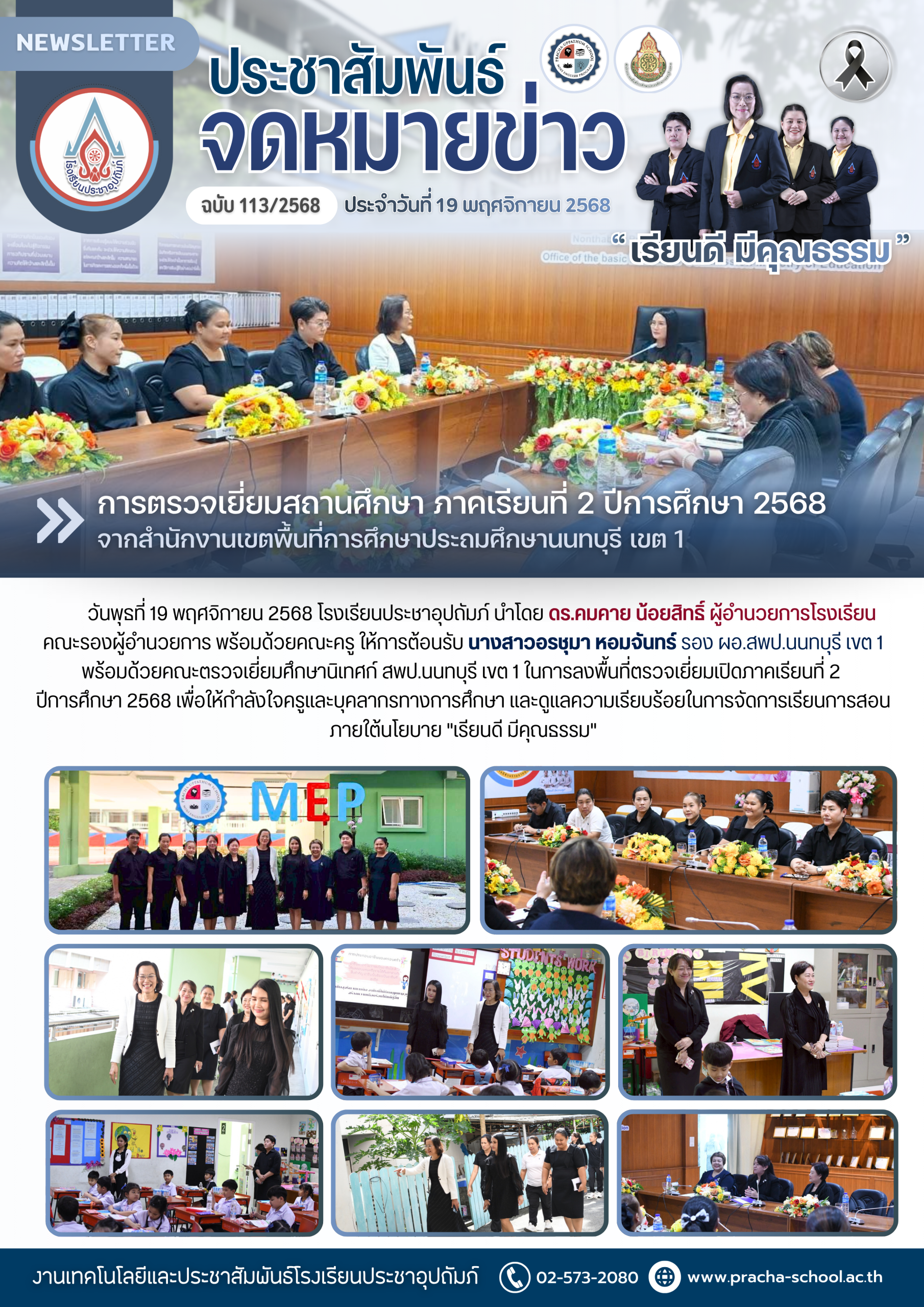 กลุ่มโรงเรียนเมืองนนท์ 1จดหมายข่าวโรงเรียนประชาอุปถัมภ์ ฉ112/2568 “ขอแสดงความยินดีกับนักเรียน ได้รับรางวัลรองชนะเลิศ อันดับ 1 การแข่งขันการตอบคำถามจากสารานุกรมไทยฉบับเยาวชนฯ ครั้งที่ 29”20 พฤศจิกายน 202520 พฤศจิกายน 2025ประชาอุปถัมภ์ โรงเรียนอ่านต่อ