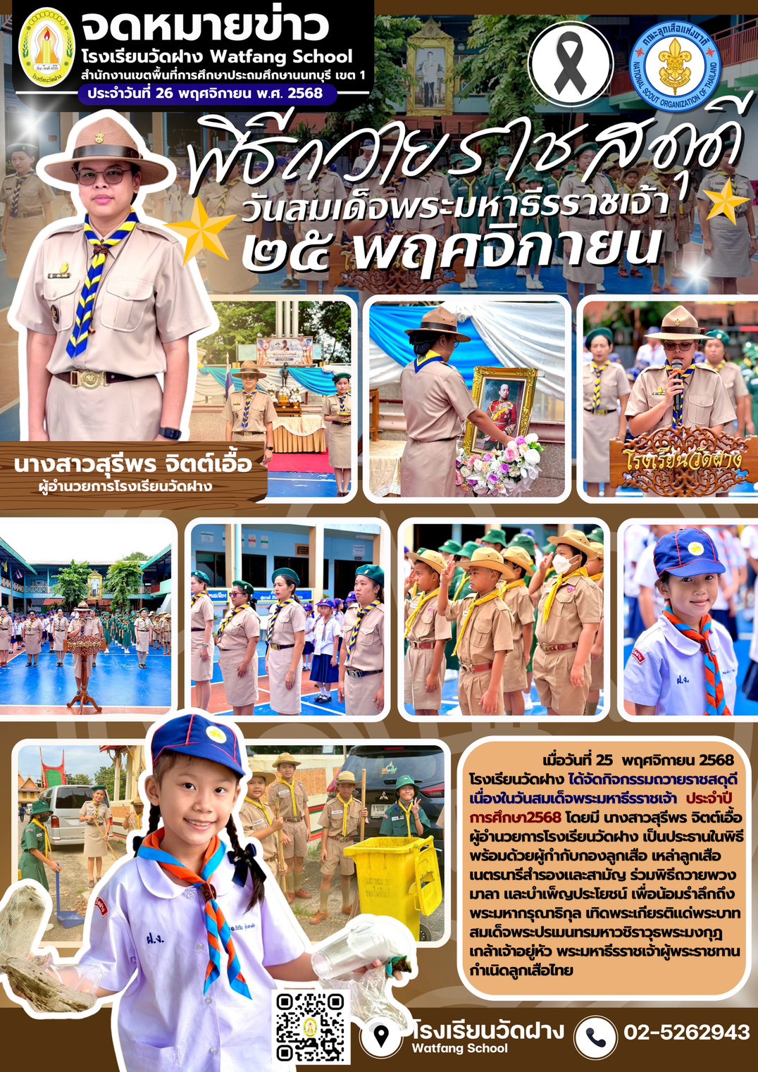 กลุ่มโรงเรียนเมืองนนท์ 1พิธีถวายราชสดุดี29 พฤศจิกายน 202529 พฤศจิกายน 2025โรงเรียน ทานสัมฤทธิ์วิทยาอ่านต่อ